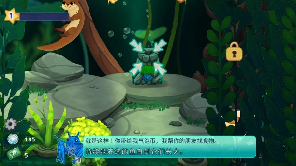 把得到的气泡币交给“雅”,这样雅就能给我们提供更多鱼食了。