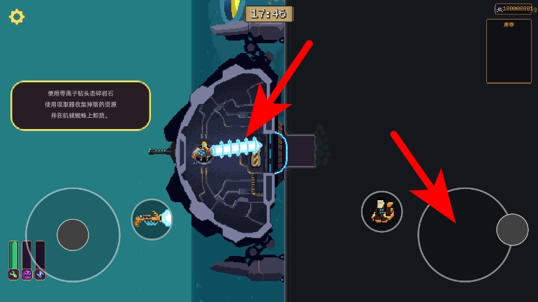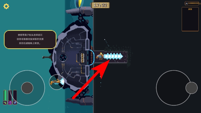 通过右侧操控完成碎石资源的收集后,这些资源可用于装置的升级。