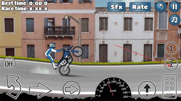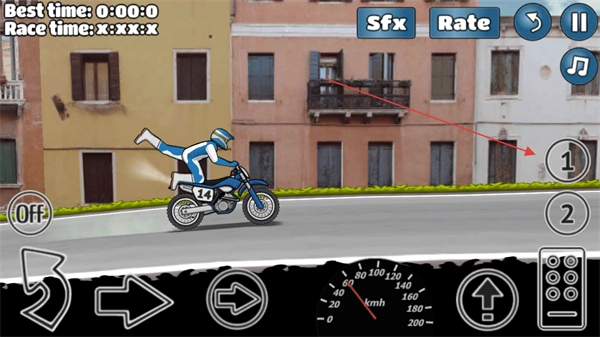 通过方向按钮进行调整,使摩托完成后轮特技动作,以此来提高挑战评分。