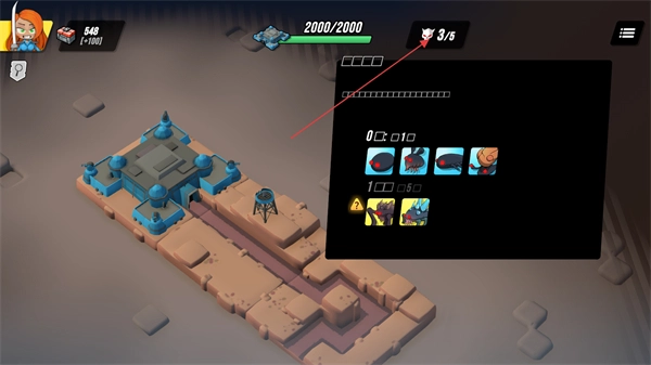 进入战争基地界面后,点击界面上方的怪兽头像图标按钮,就能查看下一波怪兽的详细信息。