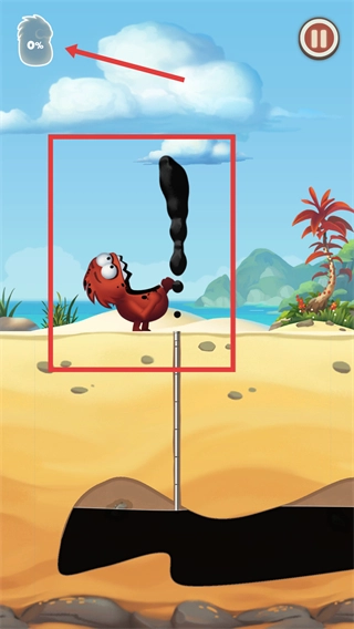 左右长按屏幕来操控角色,收集红框范围内开采出来的原油,留意左上角的进度变化,完成该区域的采油任务。