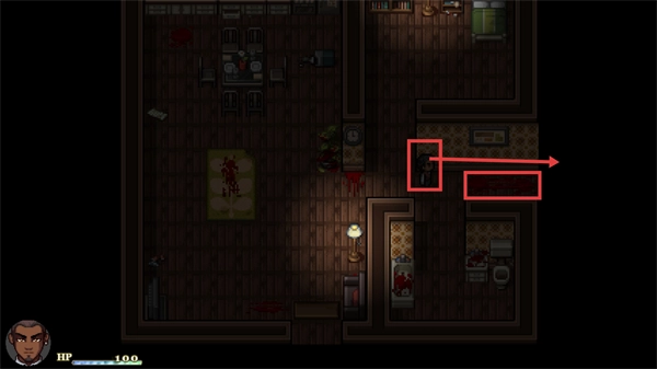 前往带有标记的血迹区域,重点查看该区域内可互动的物品,从中获取对推进剧情至关重要的线索或道具。