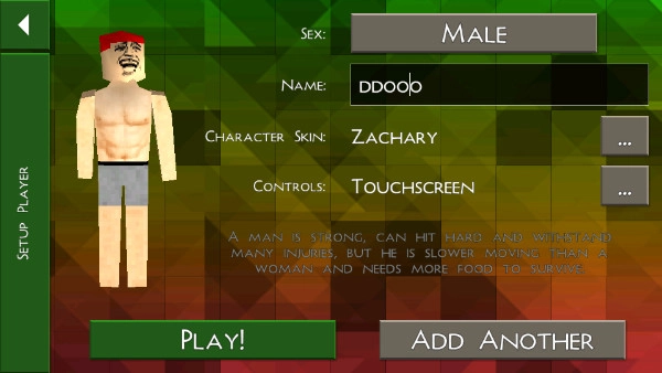 对于创建好的角色,我们能够对它的服饰、名称等进行自定义调整,确认没有问题后点击“play”;要是想体验双人或者更多人模式,就点击“add another”来创建更多角色。