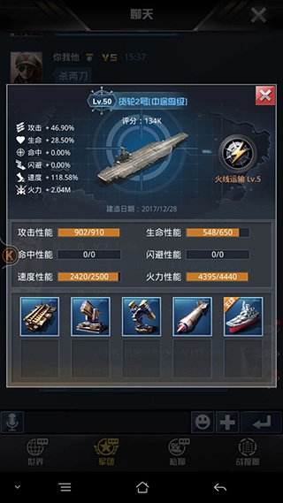 航母装备的四个最高评分项为穿刺、防护、命中与攻击。