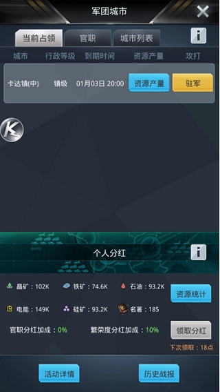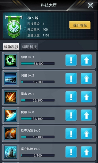 军团科技的提升同样主要依赖捐献,捐献规则和军团主等级一致,每天每种资源捐献2次即可。