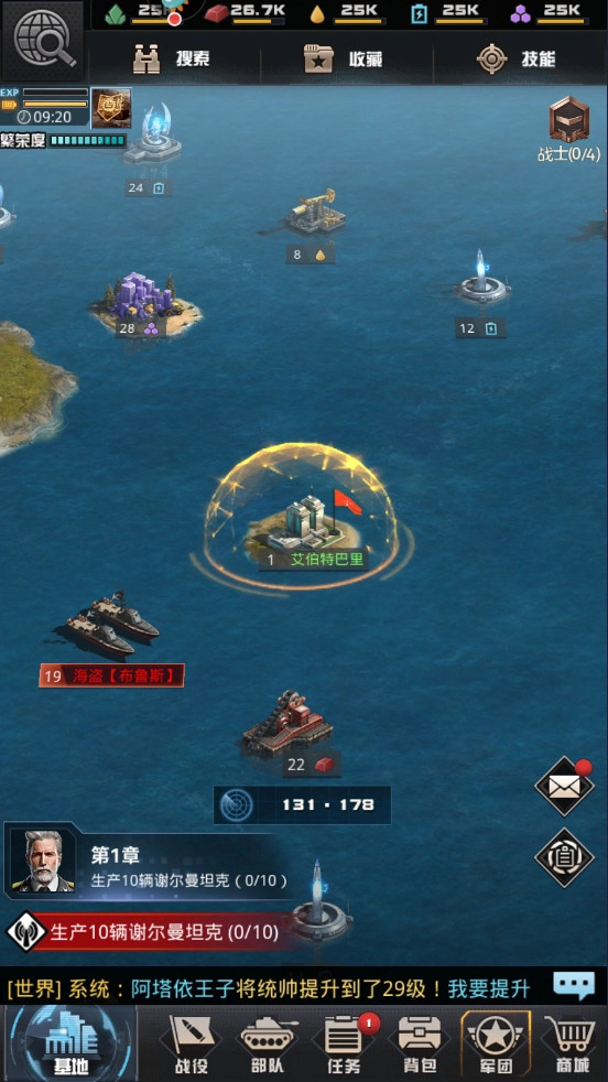 个人觉得不管怎么玩,战斗力提升才是关键,提升战斗力主要涉及几个方面:1.带兵、2.兵种等级、3.统帅、4.繁荣、5.军官、6.军衔、7.航母。
