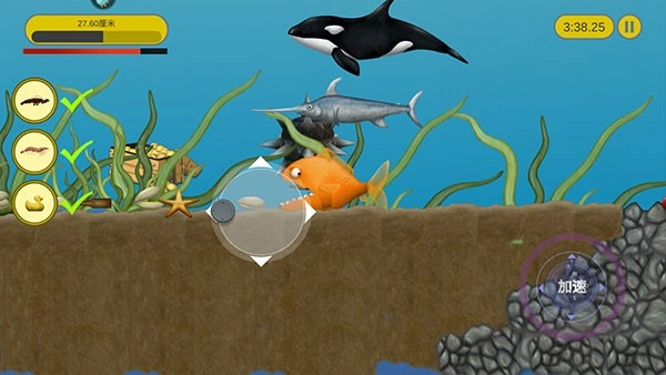 根据玩家的反馈,现在你能够通过倾斜手机的方式来操控你的鲨鱼了。