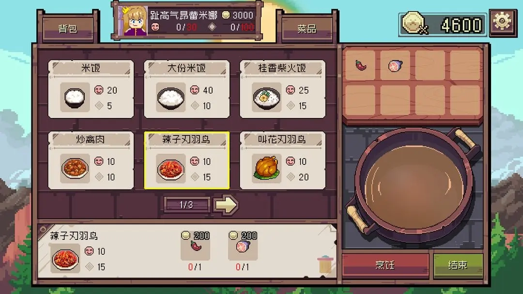 点击背包将制作的食材放入到锅里面就可以开始烹饪。