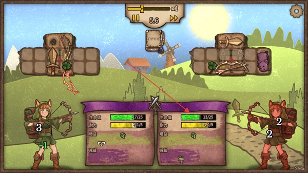 进入对战界面后,查看双方的生命值、耐力等属性,角色会自动开展战斗,参与背包乱斗对战。