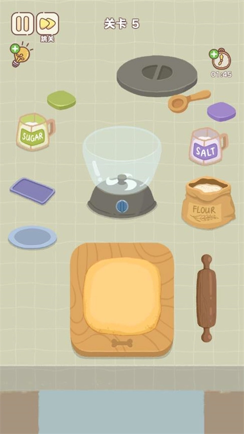 然后用擀面杖擀出面饼,记得将所有物品归置原位