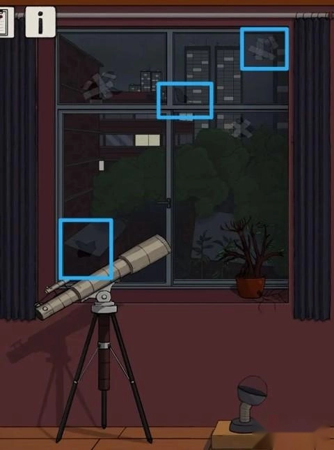 打开窗帘,点击植物盆栽,获得“残缺胶带”。