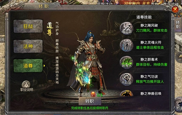 战斗技巧方面,道尊掌握着噬血术,借助该技能能够恢复自身生命值;通过召唤强化这一手段,战宠的战斗力可得到极大增强;而无极真气则可以提升道尊自身的爆发能力。