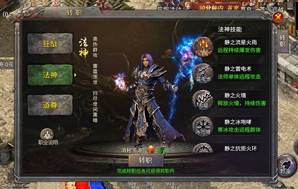 PVE技巧:凭借魔法盾赋予的出色生存能力,法神能够将区域内的怪物全部聚拢,再通过灭天火与流星火雨的交替释放进行输出,是三大职业里刷怪效率最高的。