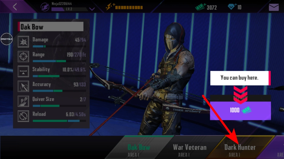 在武器库界面中,你可以查看各类弓箭的属性,通过消耗资源解锁更强大的弓箭,从而提高后续射击任务的输出效率。
