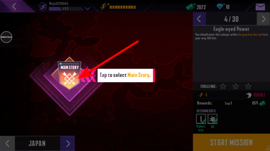 进入任务选择界面后,点击MAIN STORY选项来选定主线任务,接着查看任务描述以了解目标要求,从而为任务执行做好准备。