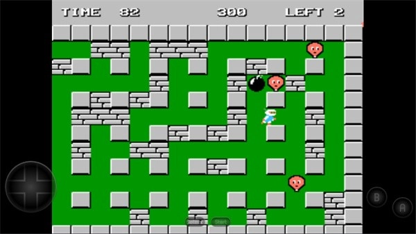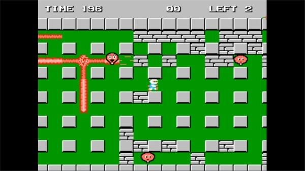 把所有怪物都清理干净后,得把墙炸开,然后去找大门。在找大门的过程里能拿到道具,这些道具的位置是随机的,而且每一关只有一个。道具的种类包括增强火力、增加可使用的炸弹数量、遥控炸弹、提升移动速度,还有放炸弹的背心。