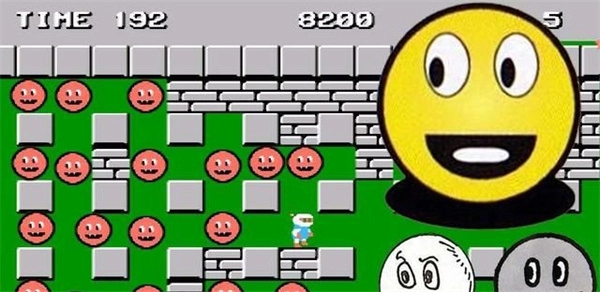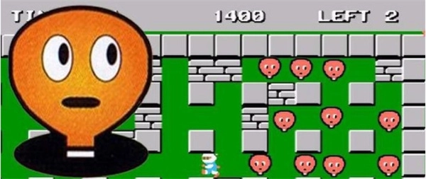 没想到吧!是不是完全没看出来!我们追着打了一辈子的初始敌兵,本体居然是气球。这可是游戏里最早登场的敌兵,到了后期也还会出现呢。它是游戏里反应和移动速度最慢、最简单的敌人。另外,我们还能对比一下气球在《炸弹人》其他版本里的模样。