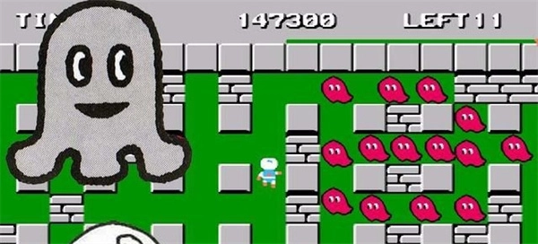 游戏里第一次出现了能穿墙的敌兵,好在它移动速度不算快,不然玩家还真对付不了它。只有用炸弹才能把它彻底困住,那时候我们都叫它“云朵”。