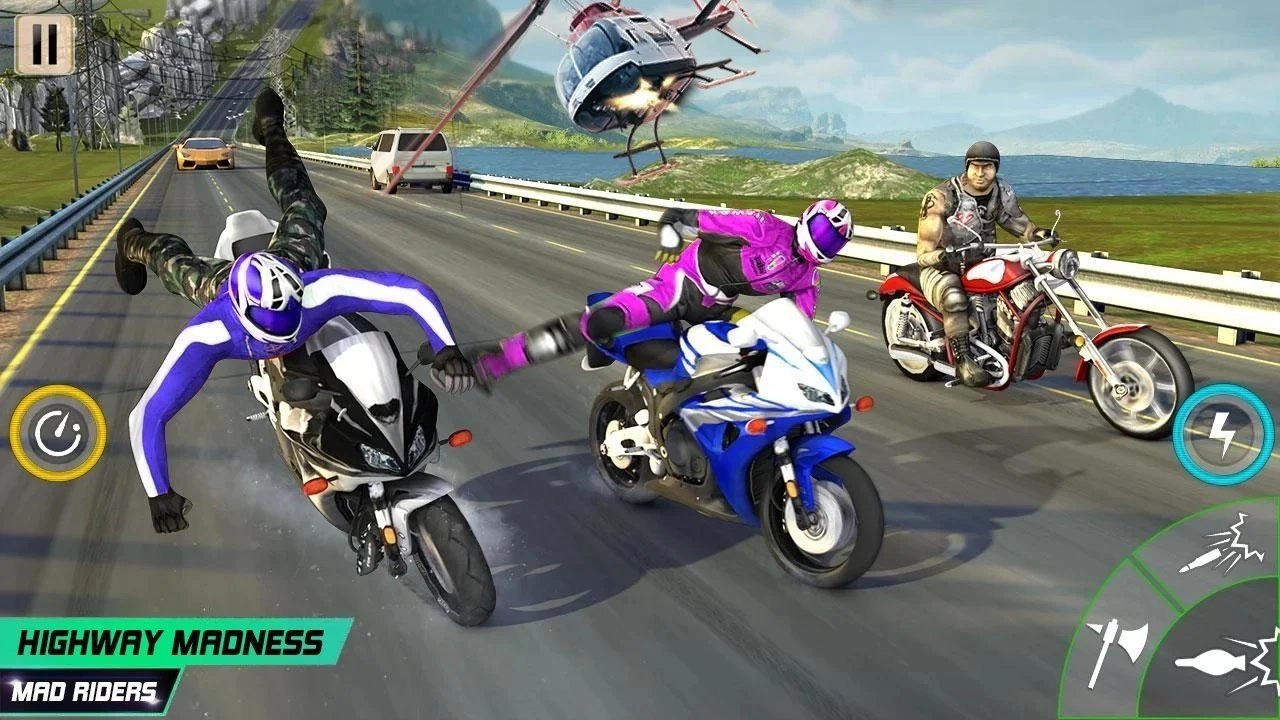 《公路死亡摩托》是一款真实感十足的摩托主题游戏,玩法充满暴力元素,玩家能使用武器攻击身旁的摩托车手,尽情享受在城市中竞速的快感。游戏里的竞速挑战十分刺激,精心设计的各类赛道场景能让你体验到逼真的驾驶感受,凭借高超的驾驶技术与其他玩家在惊险的赛道上一较高下,让你的游戏体验更加精彩。
