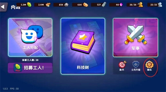 点击训练场即可打开造兵界面,从中挑选你想训练的士兵。不同士兵的资源消耗与技能效果各有差异,另外,点击科技面板后,其右下角的造兵按钮也能让你进入造兵界面。