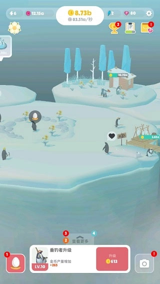 2、玩家既能通过给企鹅拍照获取金币,也能观赏企鹅的各类日常活动,像钓鱼、泡温泉之类的。