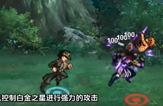 在两秒的停顿后,承太郎召唤出白金之星,朝着前方全y轴范围内、距离自身一个半身位的区域发起高爆发攻击。攻击过程中白金之星会持续发出“欧拉”的呼喊声,这一阶段持续五秒(整个技能流程共七秒),最后一击会将对手击飞至墙角。在此期间,对手无法使用替身能力,同时承太郎处于无敌状态,身上的所有敌方施加的负面效果也会被清除。(该技能的伤害指数为10/10)