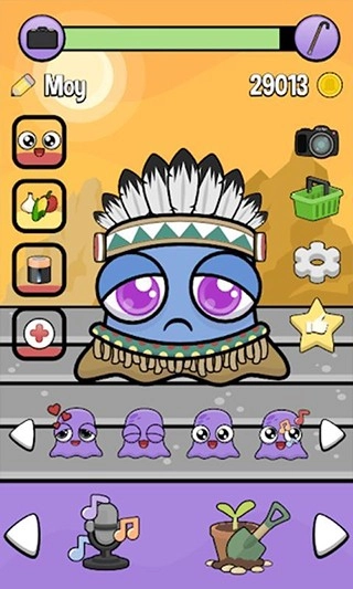 3、还能依据宠物的状态,对它进行喂食、治疗、互动玩耍,也可以用金币为宠物购置食物与装扮。