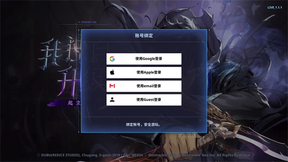 2、目前游戏提供四种登录方式,具体包括谷歌账号登录、苹果账号登录、邮箱登录以及游客登录。
