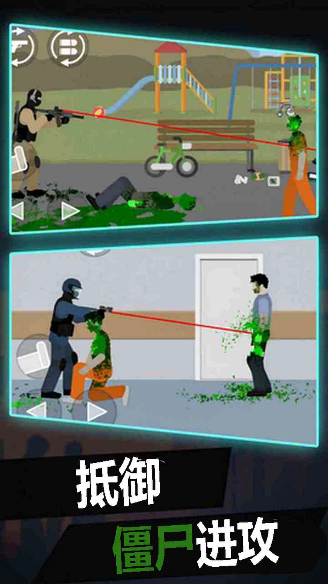 1、在各式各样的场景里和僵尸展开对抗,借助移动与射击来消灭僵尸,努力存活下来,感受射击带来的快感以及紧张刺激的氛围。