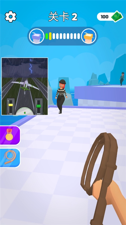 1、在关卡2里,当碰到身着囚服的敌人时,使用手中的绳索类道具对准敌人,以此为把他们扔到场外提前做好准备。