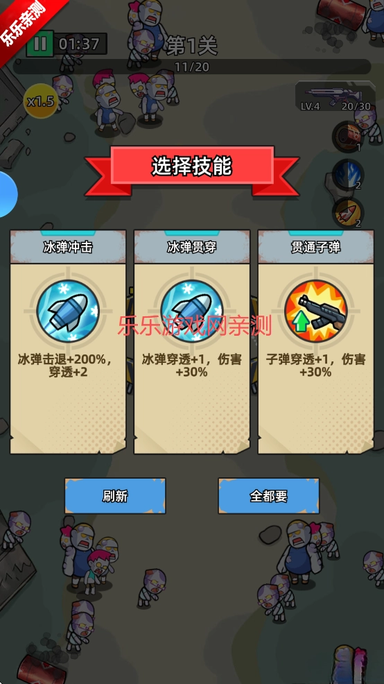冰弹累计命中32名僵尸后,释放1次冰霜风暴I