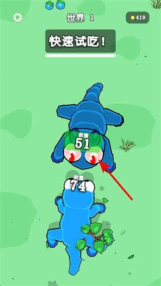 2、在场景中要操控生物进行移动,移动过程中需要瞄准能食用的植物或果实,借助吞噬这些物品来提高自身的等级与战力。