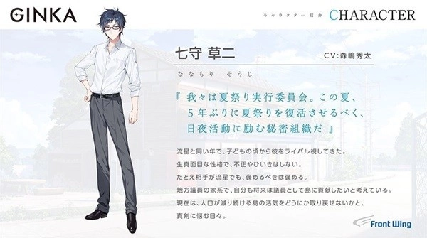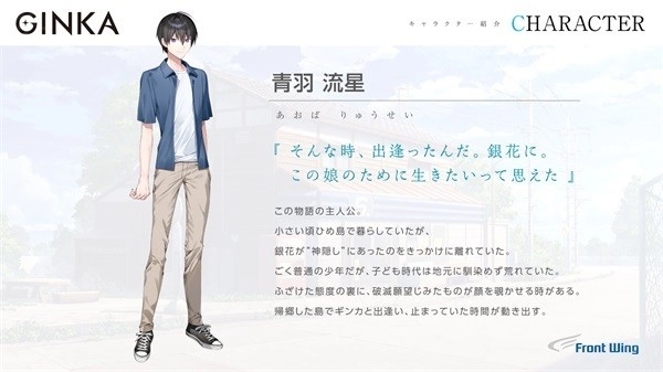 游戏的主角。小时候在姬之岛上住过一阵子,可自从银花发生神隐,他就搬离了这座岛。如今他只是个普通少年,但儿时因为难以融入姬岛,行为有些叛逆,总爱搞恶作剧。看似玩世不恭的模样下,藏着自暴自弃的人生态度,偶尔会流露出来。当他再次回到姬之岛,遇见Ginka后,停滞的时光重新开始流转。