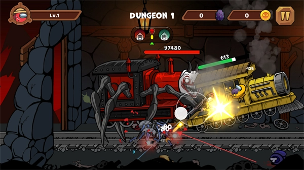 3、处于洞穴场景时,持续对蜘蛛火车BOSS发起攻击,与此同时清理掉周边的小怪,维持稳定的火力输出。