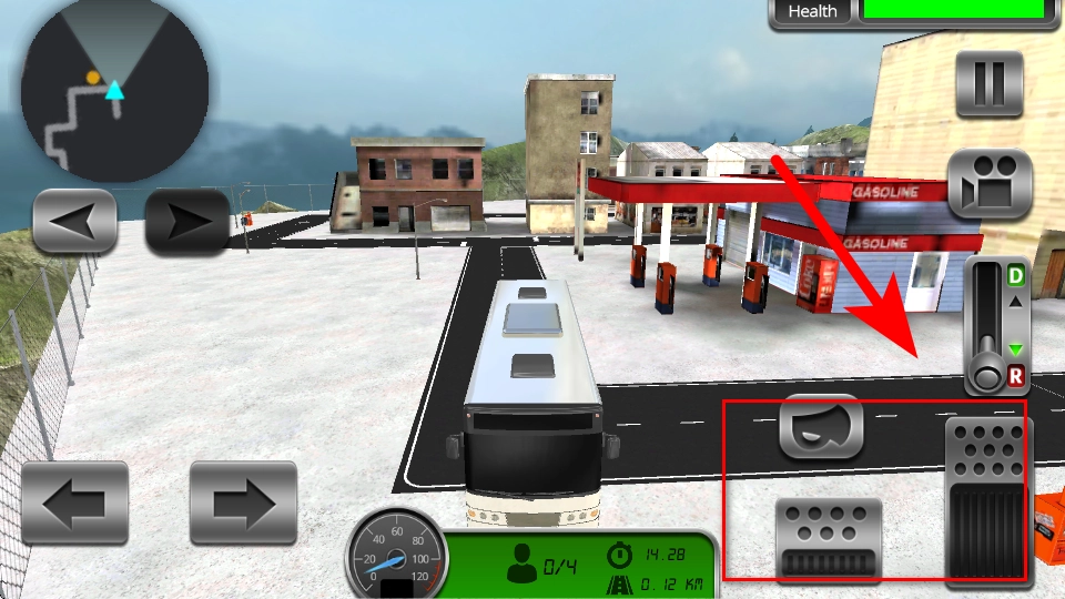 4、通过右侧的按钮来操控巴士的加速、刹车等动作,驾驶巴士在道路上行驶。