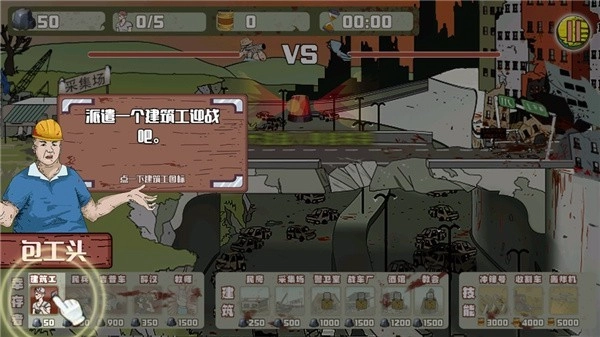 4、率先派遣一个建筑工迎战;