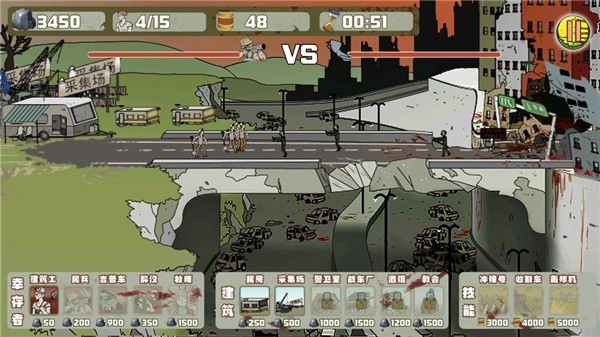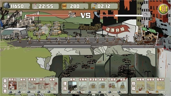 3、在游戏界面的顶端,你能看到双方基地的血量情况,同时可以派遣幸存者发起进攻。