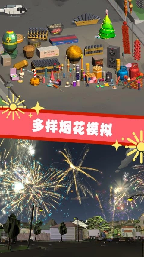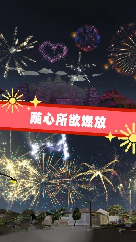 5. 配备了多样的烟花素材与特效,玩家能够依照自身的偏好打造出各类璀璨耀眼的烟花秀