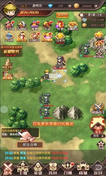 1、当玩家在游戏里碰到难以攻克的关卡时,能够获取高阶英雄,这些英雄会助力玩家顺利闯过当前关卡。
