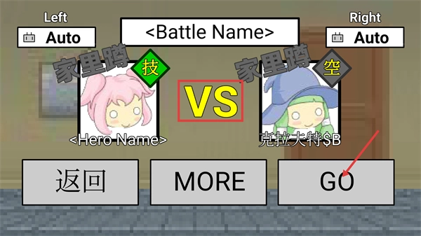 1、进入对战准备界面后,可开启左右两侧的【Auto】功能,在确认双方英雄信息后,点击【GO】按钮就能进入对战环节。