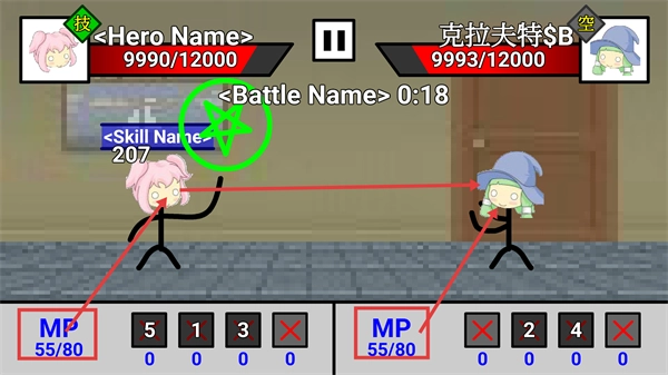 3、对战进入中期阶段时,要留意MP数值的变动情况(例如显示为【55/80】这样的形式),保持释放【魔法攻击】来输出伤害,与此同时还要观察敌方的状态,以此调整作战的节奏。