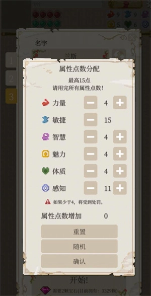 此加点方案不再采用力、智、魅的鉴定方式,具体加点如下:敏捷先加到18(解锁杂耍1),感知加到13(解锁求生1);之后敏捷继续加到27(解锁杂耍2),感知加到20(解锁求生2),体质初始点6。剩余点数可随机分配,若流程中存在增加体质的事件,可考虑将体质冲刺到13(解锁稳定1);若没有相关事件,则剩余点数可全部投入敏捷。