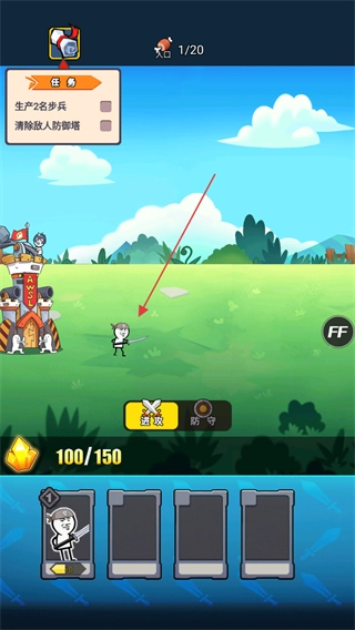 3、指挥沙步兵对敌方防御塔发起攻击,以此消耗其生命值,从而推进并完成清除敌方防御塔的任务。