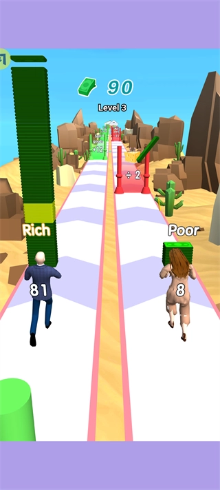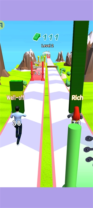 《情侣暴富冲冲冲》是一款竖屏跑酷收集类休闲游戏,核心玩法聚焦金钱收集——玩家控制角色在跑酷途中拾取金钱以增长财富,同时要避开会扣除金钱的障碍、避免不必要的消耗;当积累到足够财富后,就能用来装修温馨的小家,还能通过逐步升级解锁更多游戏内容。游戏的跑酷关卡设计得丰富又有趣,还有实用道具帮助玩家顺利闯关,让大家在轻松的跑酷过程中,体验积累财富与打造家园的双重乐趣。