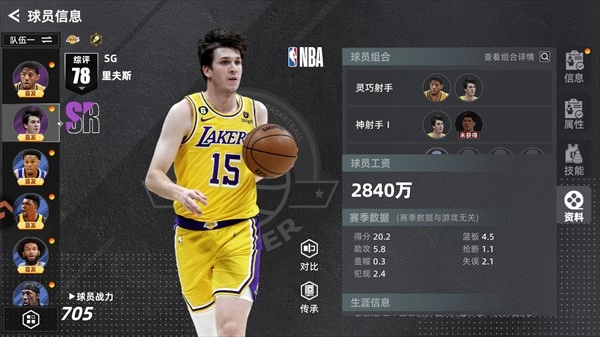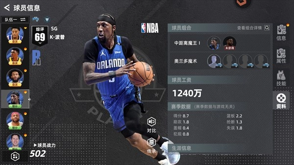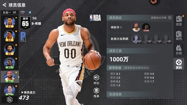 美职篮绝对巨星球员图鉴介绍&上阵组合