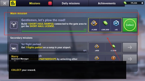 3、通过完成每日任务获取金币,这些金币可用于扩建航站楼或购置新飞机,与此同时,还能推动剧情进展,解锁更多新内容。