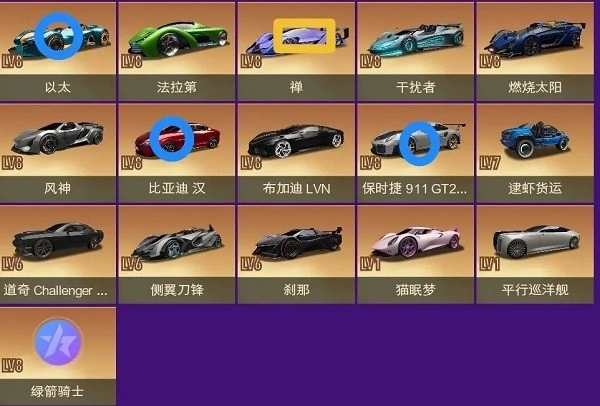 这里就出现一些氪金/黑金车了,由于本文主要面向0氪/轻氪玩家群体,所以就没有对这些车辆进行标注。