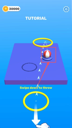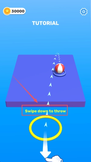 2、进入教程环节:在分数达到30000分的界面,按照提示“Swipe down to throw”进行下滑投掷操作。