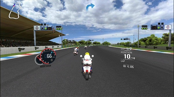 4、长按屏幕左侧可控制摩托前进,长按右侧则为刹车操作,屏幕上方会出现右转提示,以辅助你沿着正确路线行驶。