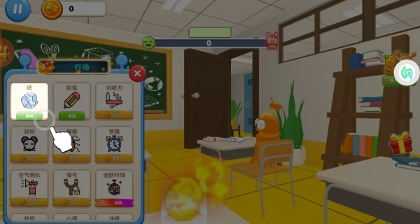 3、可以从纸团、粉笔、弹弓等各式各样的道具里挑选自己喜欢的物品,再依据不同场景的需求来搭配使用,这样能提高恶作剧的成功率。